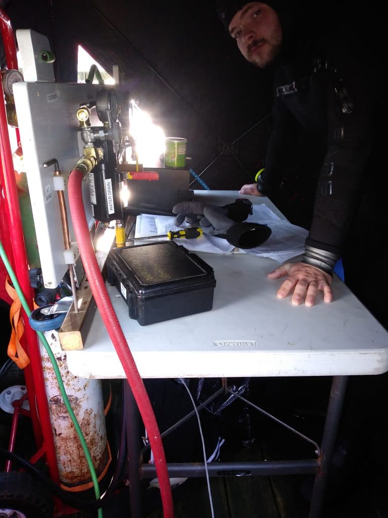 This 3 or 4 day program (depending on the number of students) takes a previously certified open water diver and moves them forward to learn the skills to safely use Surface Supplied Diving Equipment. The diver gains all of the knowledge necessary to safely perform commercial harvesting using surface supplied equipment. The training days include learning about SSA equipment, Drysuit maintenance, use of the dive computer, SSA safety drills, conducting dry runs on land, and then moving on to 4 SSA dives in the water. The class sizes are kept small so that each student gets specialized attention.